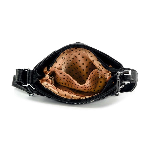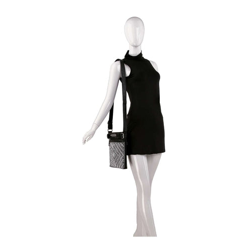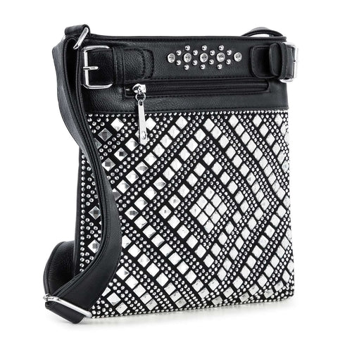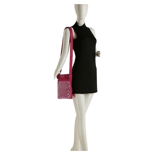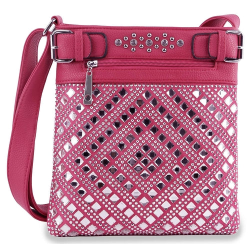 Turn some heads! A sparkling diamond-shaped pattern covers the front panel of this crossbody sling.